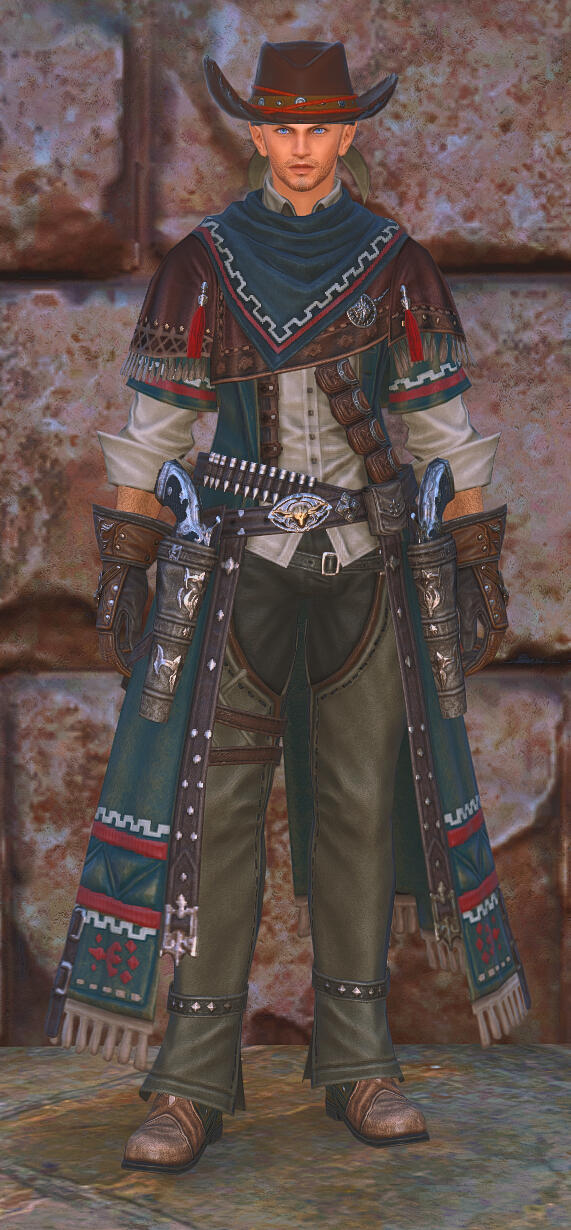 Over the years, Henri has achieved a deep understanding and mastery of the blue magic technique known as Aetheric Mimicry. By attuning himself to the aetheric wavelength of others, he can draw upon their hard-won combat experience in an instant and utilize that experience himself, enhancing the usage of certain other blue magic spells in his repertoire and making him more effective in battle. This aetheric attunement is only temporary, however, and Henri can only attune himself to one person's aether at a time. After intensive study and experimentation with this technique, Henri has since chosen to take his mastery to the next level by studying under the world's greatest mime... Gogo!The "mimic magic" utilized by Gogo allows the Far Eastern Roegadyn to mimic not just a target's aetheric wavelength but their martial and magical techniques learned via training and connections to their soul crystals, and he has since trained Henri in the fundamentals of this mysterious art. In the years since, Henri has mastered mimic magic to the point where he can duplicate even the most esoteric skills and knowledge of those so mimicked... but besides being limited to a single individual at a time, Henri's attunement to their aetheric wavelength also has the unfortunate side effect of imprinting their core personality traits and mannerisms onto himself while engaged in the mimicry.Henri utilizes the power of glamour prisms when performing a mimicry, disguising both his weaponry and his attire to take on the form of a seasoned veteran of the particular role being played. Those with aethersight or similar abilities, however, can see through the disguise to the true form of the blue mage hidden beneath them. The effort of mimicry is also quite taxing on Henri's personal aether reserves; he is only able to sustain the mimicry temporarily before he has to revert to his true form, and he is unable to do so again until his aether has replenished itself. At most, the mimicry will last no longer than a single roleplaying scene or an in-character Dungeon, Trial, Raid, Guildleve or FATE.