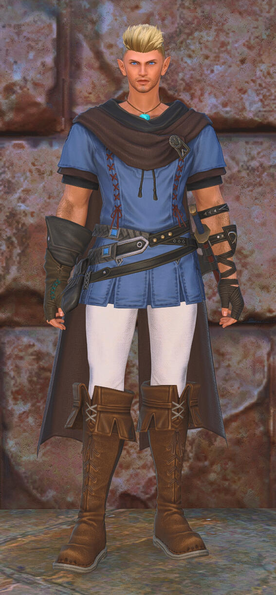 An adventurous and ambitious young man, Henri enjoys nothing more than wandering the world and finding new places to explore... and trouble to get into. This also sometimes leads to overconfidence on his part, as Henri tends to tackle problems head-on and with little regard to his own safety. He moves through life in the same bold way, saying and doing as he pleases and very rarely holding back his true feelings and opinions. In Henri's eyes, the adventurer lifestyle is filled with danger and the constant threat of death, and he has chosen to embrace that life with unreserved zest and vigor.Henri is an honest, loyal and trustworthy man who takes great pride in his work, and prefers to surround himself with those who share those qualities. Engineering is his calling and blue magic his passion, and he is at his best when engaged with them. He enjoys the art of conversation, having met a plethora of vastly different cultures and experiences during his travels across the Three Great Continents, and has the uncanny ability to relate to and connect with almost every person he comes across. At heart a good-natured man, Henri is always willing to work hard and help those in need.Due to growing up in poverty as a "mongrel" half-breed in the Brume and experiencing the callous disregard of the highborn towards the lowborn, Henri takes a dim view of those who exploit others for their own benefit, be they oppressive tyrants or merely benignly neglectful. Any respect for authority must be earned from him, not simply given. Henri respects the law only insofar as much as it serves the people, ignoring those he finds immoral or oppressive. Henri is particularly sensitive and defensive about his half-Elezen heritage, keenly aware of the taboos against mixed-race procreation.The death of his parents and the destruction of his home by the claws and flames of the Dravanian Horde during the Dragonsong War left Henri with an almost irrational fear, hatred and mistrust of dragons and scalekin, the trauma of these events leaving deep scars in his psyche. But with the end of the Dragonsong War, the revelations of the reasons behind the war in the first place, and the dawning of a new age for Ishgard and its people, Henri has been working hard to both conquer his fears and move past his prejudices by forging a nascent partnership with the red dragon crafter Kal Khai.
